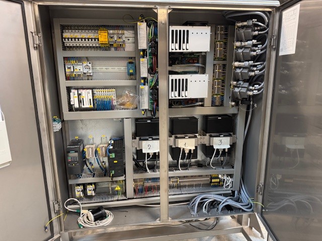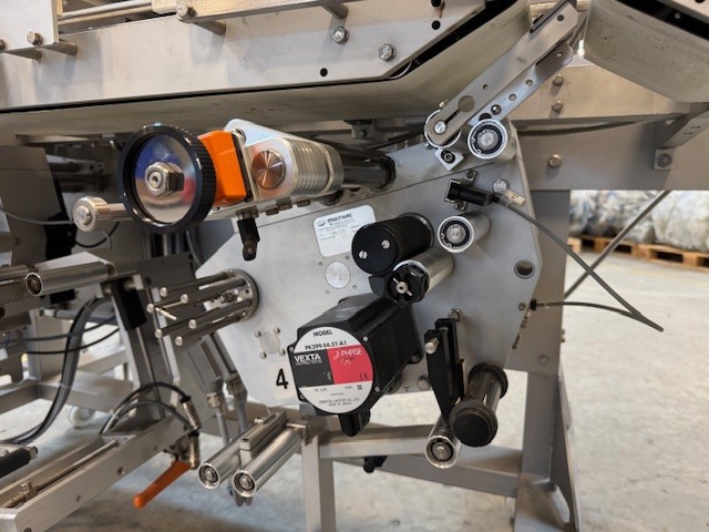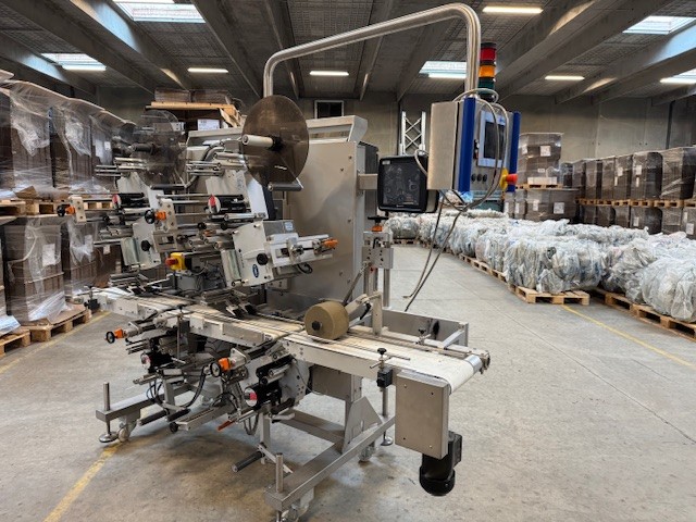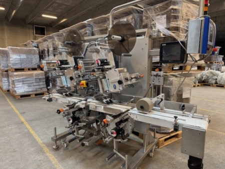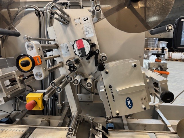 The line consists of 2 pcs top labellers type 6382 incl. Domino V300+ thermal printers for adhesive labels and 2 pcs bottom labellers type 6211 and 6281 incl. Domino V300+ thermal printers.