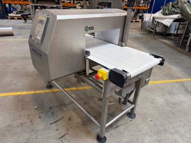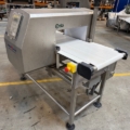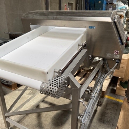 The metal detector has an effective aperture of 160 x 450 mm. Belt width 420 mm, length 1500 mm. The metal detector has multiple frequency adjustment for multiple product types. It detects ferrous, non-ferrous and even stainless steel items. With alarm/stop function.