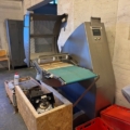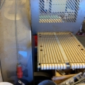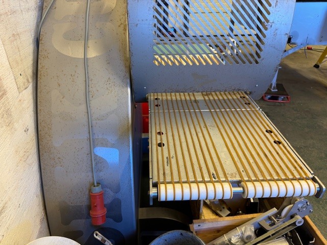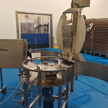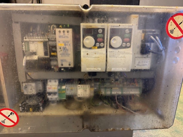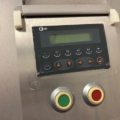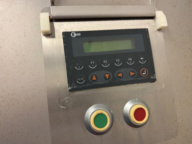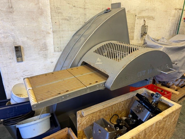 The machine is a double lane D-cut slicer. It has frequency control on both the conveyor and the slicer.