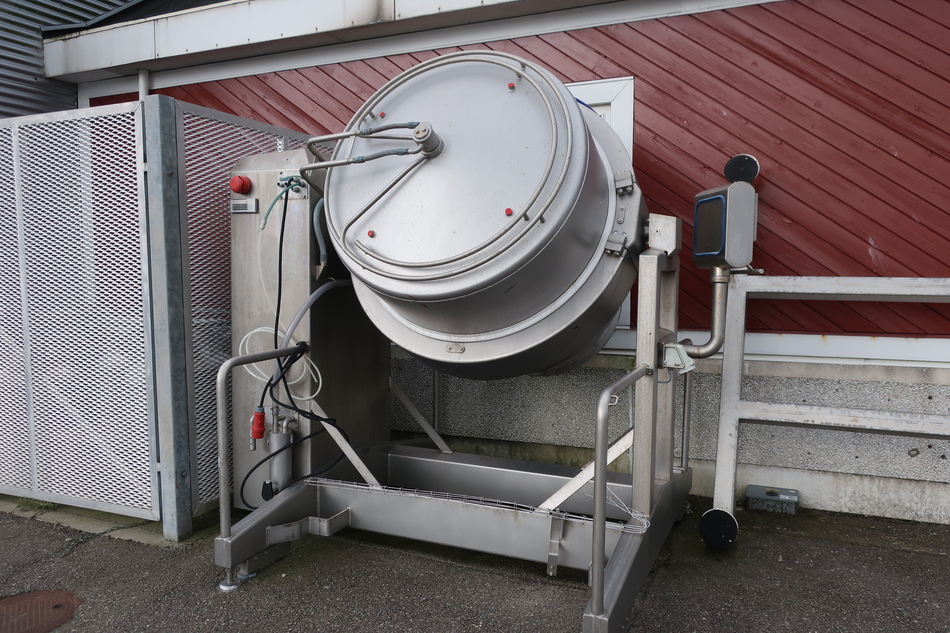 The vacuum tumbler has a drum volume 1500 liter and a max capacity of 1000 kg per batch. It has 6 different tilting positions and a max position of 230°. The filling opening has a diameter of 800 mm for easy filling. The machine is suitable for massaging, marinating and tumbling. With cooling and pH control. Incl. load cells for weighing of the product. The machine has very few running hours.
